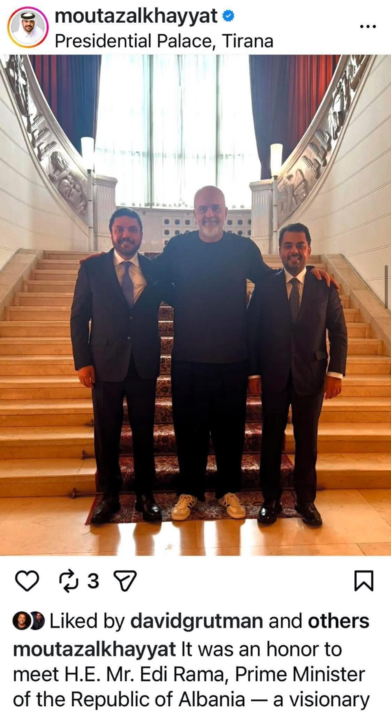 Sipas saj, ekziston edhe një foto e Al Khayyat Brothers me Edi Ramën, në qershor 2025, vetëm një muaj pas firmosjes së kontratave 11 miliardë dollarëshe në Siri.