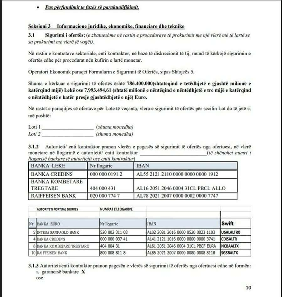 Dokumentet e tenderit parashikonin qartë detyrimin për depozitimin e garancisë financiare në llogaritë e Autoritetit Portual. Mosplotësimi i këtij kushti hedh dyshime të forta se kompania nuk kishte fondet e nevojshme dhe se përzgjedhja e saj mund të jetë bërë mbi baza të tjera, jo ekonomike.